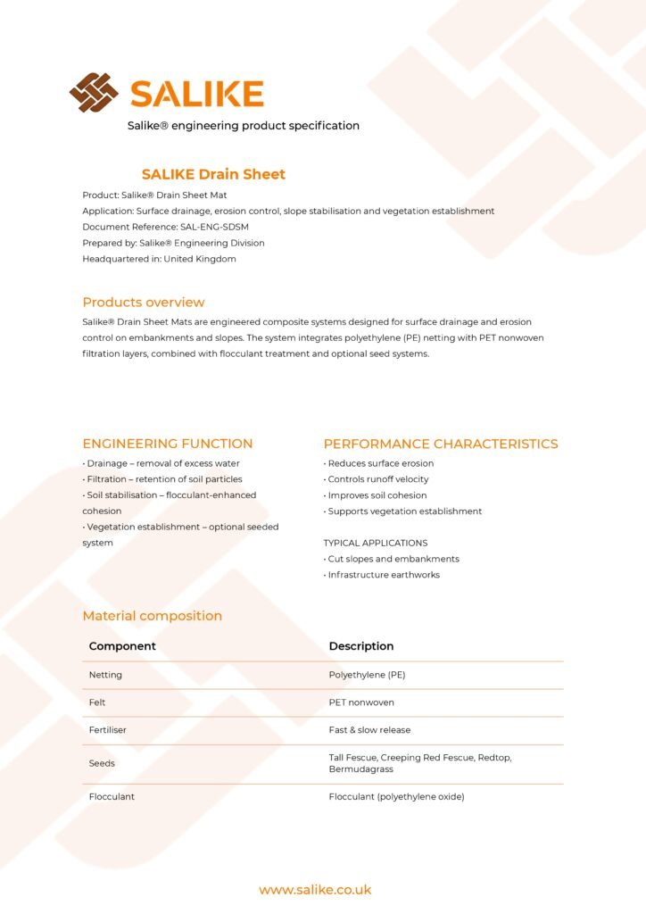 Salike products are designed to provide erosion control, surface stabilisation and ecological enhancement in accordance with their intended application. They do not constitute structural support systems unless expressly stated.